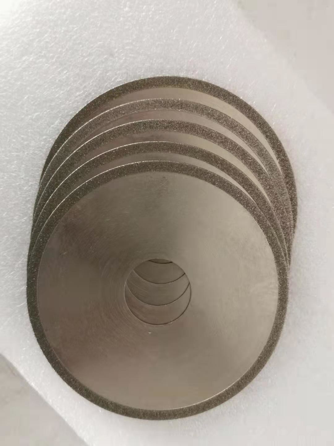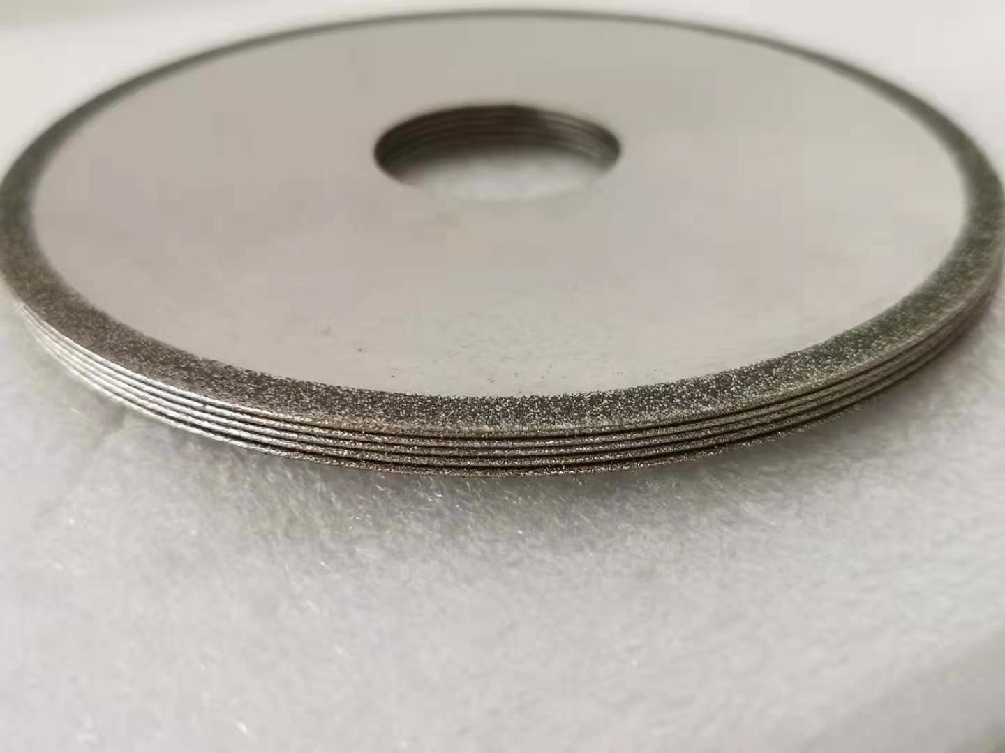 برای تیغ اره الماس ، لایه کار چرخ سنگزنی حاوی دانه های ساینده الماس است و ساینده های الماس توسط پیوند فلزی به زیر لایه پیوند می خورند.ابتدا ضخامت پیوند فلزی رسوب شده 20٪ از ارتفاع دانه های ساینده الماس (سنباده) است و سپس از پیوند فلزی برای اتصال (ضخیم شدن) دانه های ساینده الماس استفاده می شود و ضخامت آن در حدود 2/3 از ارتفاع دانه های ساینده.