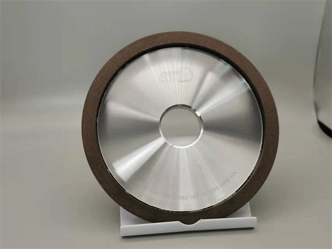 چرخ آسیاب الماس با پیوند رزین از لایه الماس و ماتریس آلومینیوم تشکیل شده است. لایه الماس حاوی پودر مخلوط از پودر الماس، پودر رزین و پودر فلزی است.و همچنین پرکننده ی فشرده شده با رزمهنگامی که بستر های آلومینیومی ترکیب می شوند، دایره بیرونی، دایره داخلی و هواپیما از آلیاژ سخت و سایر قطعات کار شده است، نیمه تکمیل شده است،و با چرخ های تراش الماس در هنگام کار با سرعت بالا خرد می شود.