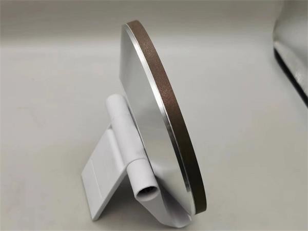 چرخ آسیاب الماس با پیوند رزین از لایه الماس و ماتریس آلومینیوم تشکیل شده است. لایه الماس حاوی پودر مخلوط از پودر الماس، پودر رزین و پودر فلزی است.و همچنین پرکننده ی فشرده شده با رزمهنگامی که بستر های آلومینیومی ترکیب می شوند، دایره بیرونی، دایره داخلی و هواپیما از آلیاژ سخت و سایر قطعات کار شده است، نیمه تکمیل شده است،و با چرخ های تراش الماس در هنگام کار با سرعت بالا خرد می شود.